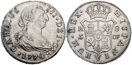 Charles III (1759-1788). 8 reales. 1774. Sevilla. CF. (Cal-1231). Ag. 26,90 g. Cleaned. Rare. Choice VF/Almost XF. Est...600,00.