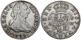 Charles III (1759-1788). 8 reales. 1775. Sevilla. CF. (Cal-1232). Ag. 26,81 g. Faint scratches. Rare. VF/Choice VF. Est...450,00.