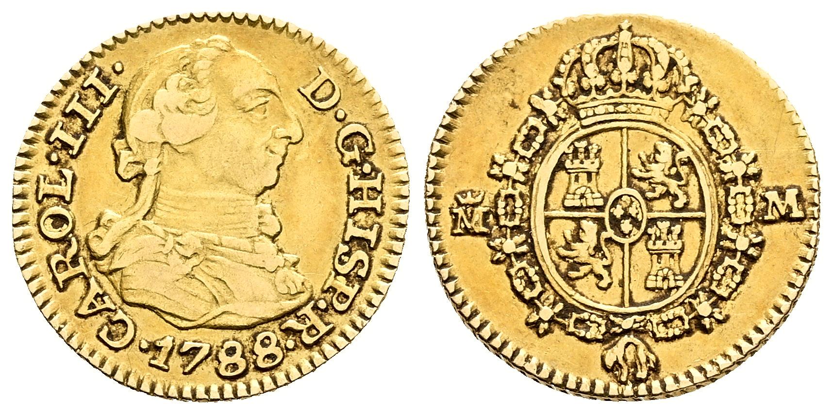 Charles III (1759-1788). 1/2 escudo. 1788. Madrid. M. (Cal-1286). Au. 1,72 g. Choice VF. Est...200,00.