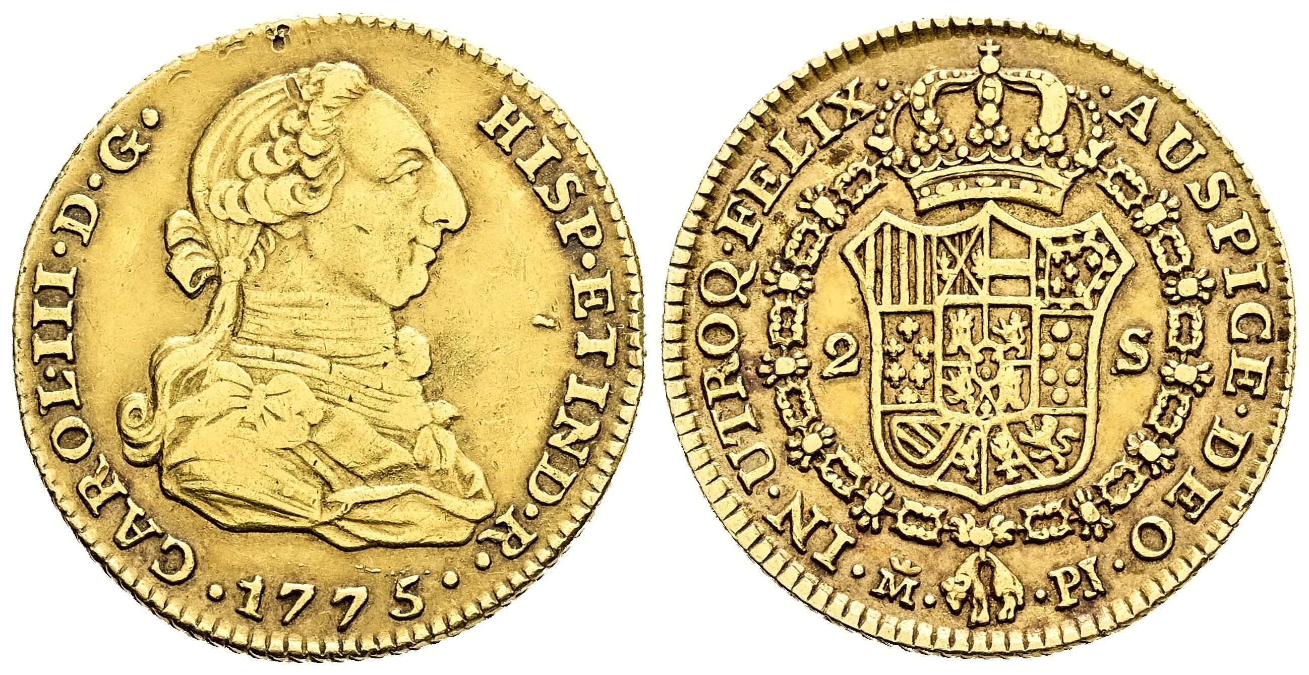 Charles III (1759-1788). 2 escudos. 1775. Madrid. PJ. (Cal-1549). Au. 6,70 g. Nice color. Minor nick on edge. VF/Choice VF. Est...550,00.