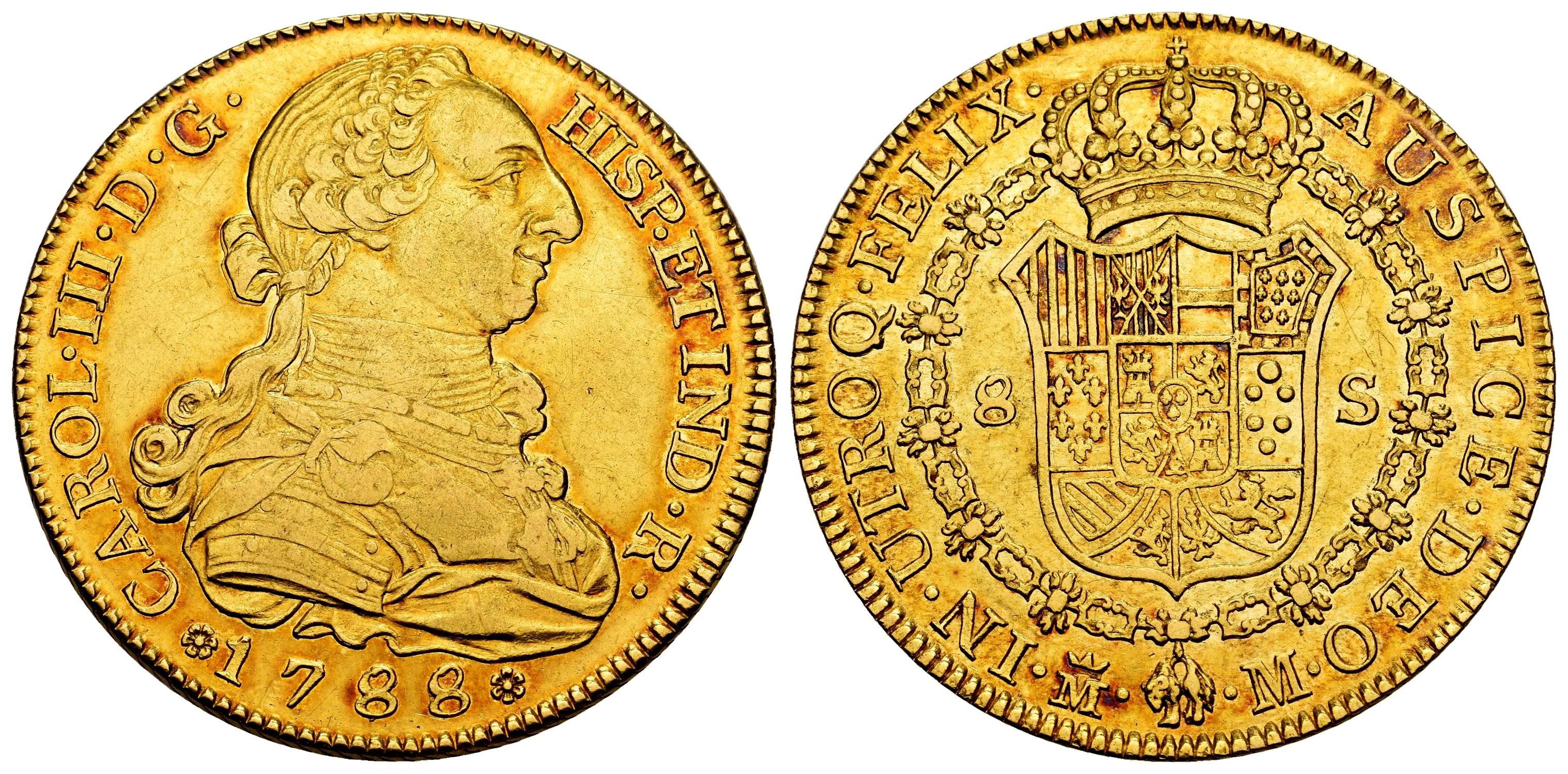 Charles III (1759-1788). 8 escudos. 1788. Madrid. M. (Cal-1976). (Cal onza-739). Au. 27,03 g. Minimal hairlines. Traces of luster. Almost XF/AU. Est...4000,00.