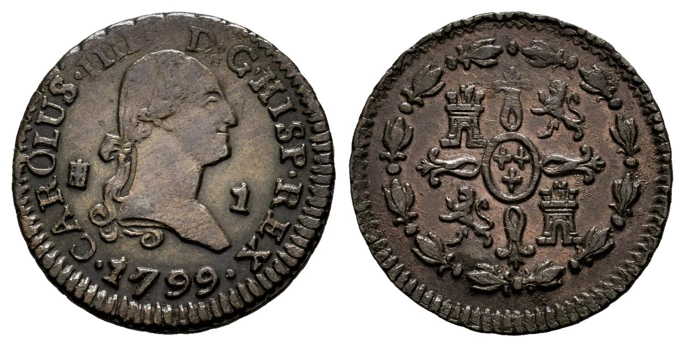 Charles IV (1788-1808). 1 maravedi. 1799. Segovia. (Cal-22). Ae. 1,18 g. Attractive. Scarce. Choice VF. Est...80,00.