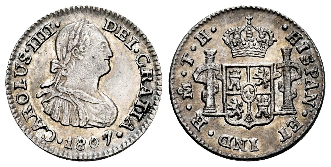 Charles IV (1788-1808). 1/2 real. 1807. Mexico. TH. (Cal-294). Ag. 1,89 g. Original luster. Soft tone. Attractive. Almost XF/XF. Est...180,00.