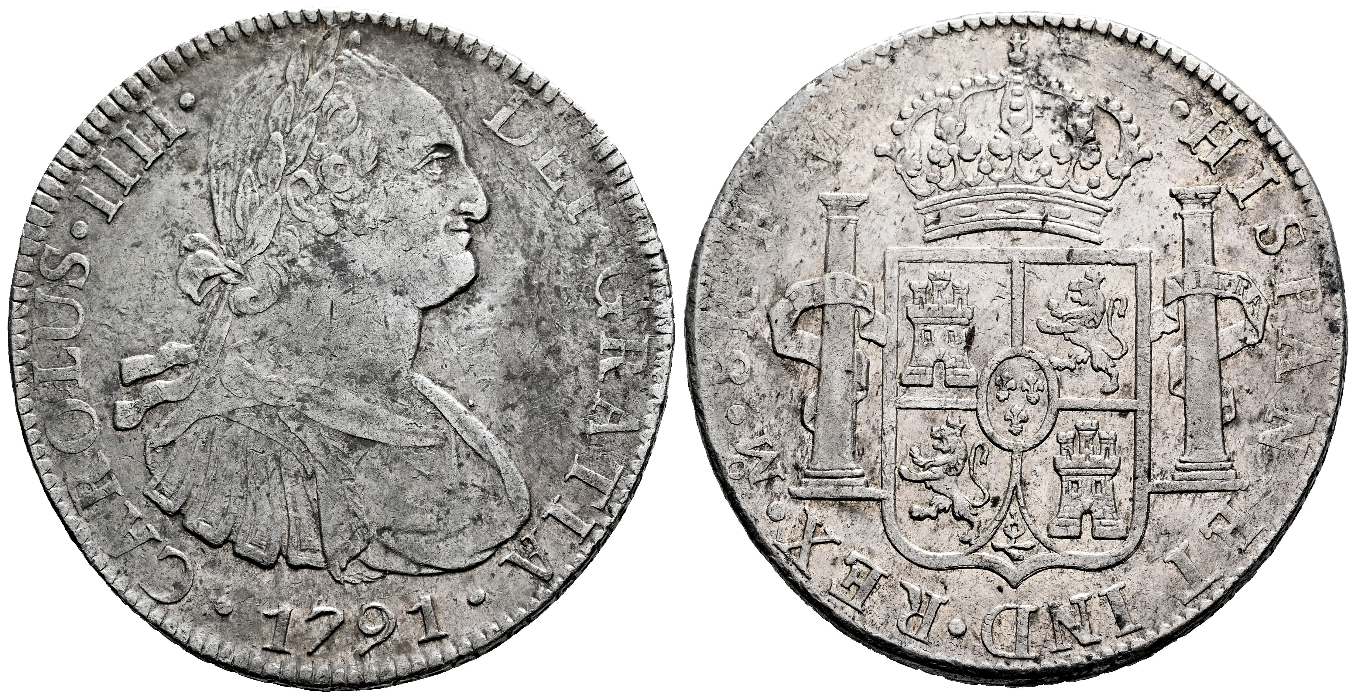 Charles IV (1788-1808). 8 reales. 1791. Mexico. FM. (Cal-953). Ag. 26,98 g. First-year king´s bust. Minor oxidations. With some original luster remaining. Choice VF. Est...110,00.