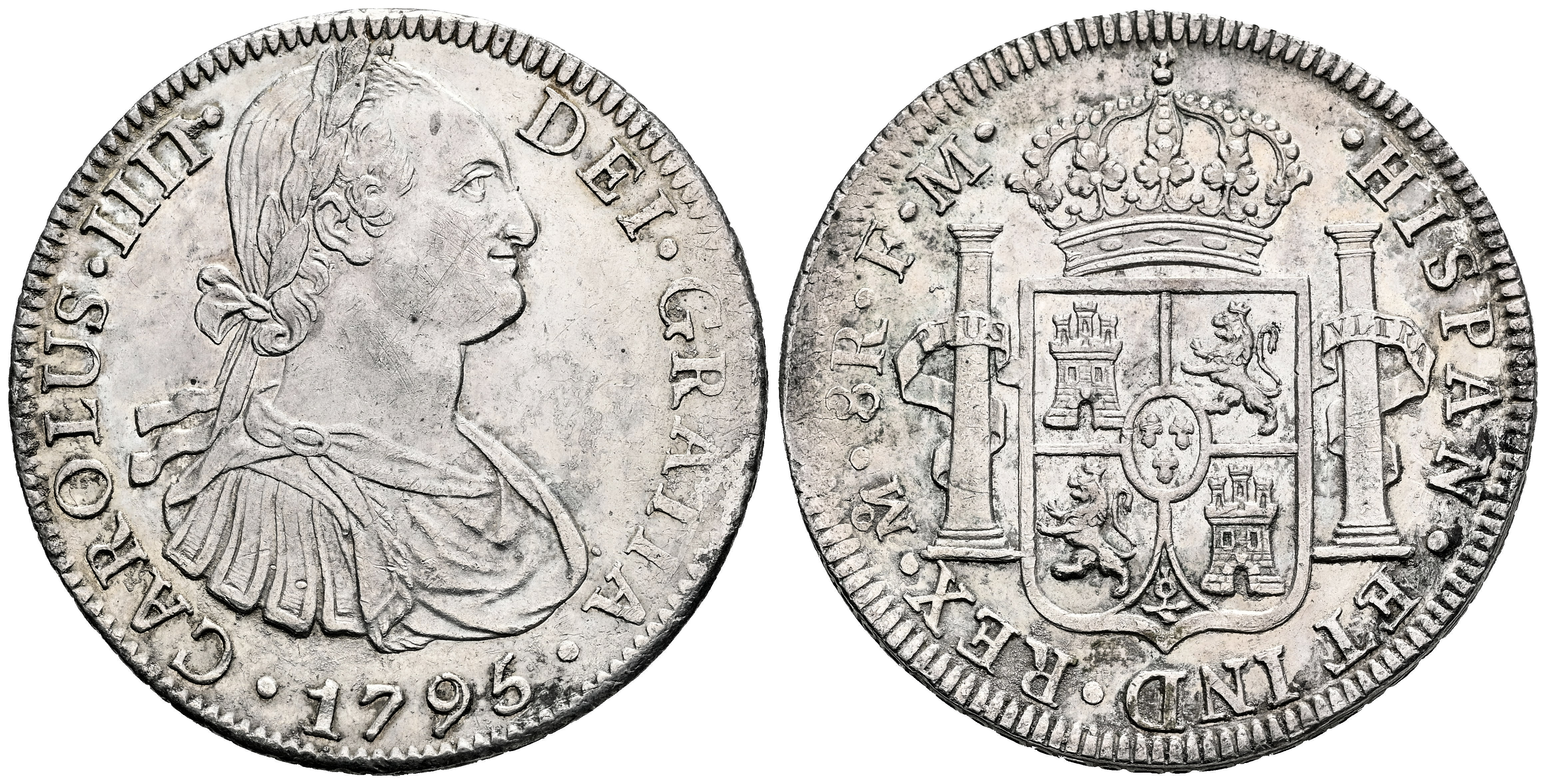 Charles IV (1788-1808). 8 reales. 1795. Mexico. FM. (Cal-958). Ag. 26,91 g. Minimal hairlines. Traces of luster. XF. Est...220,00.