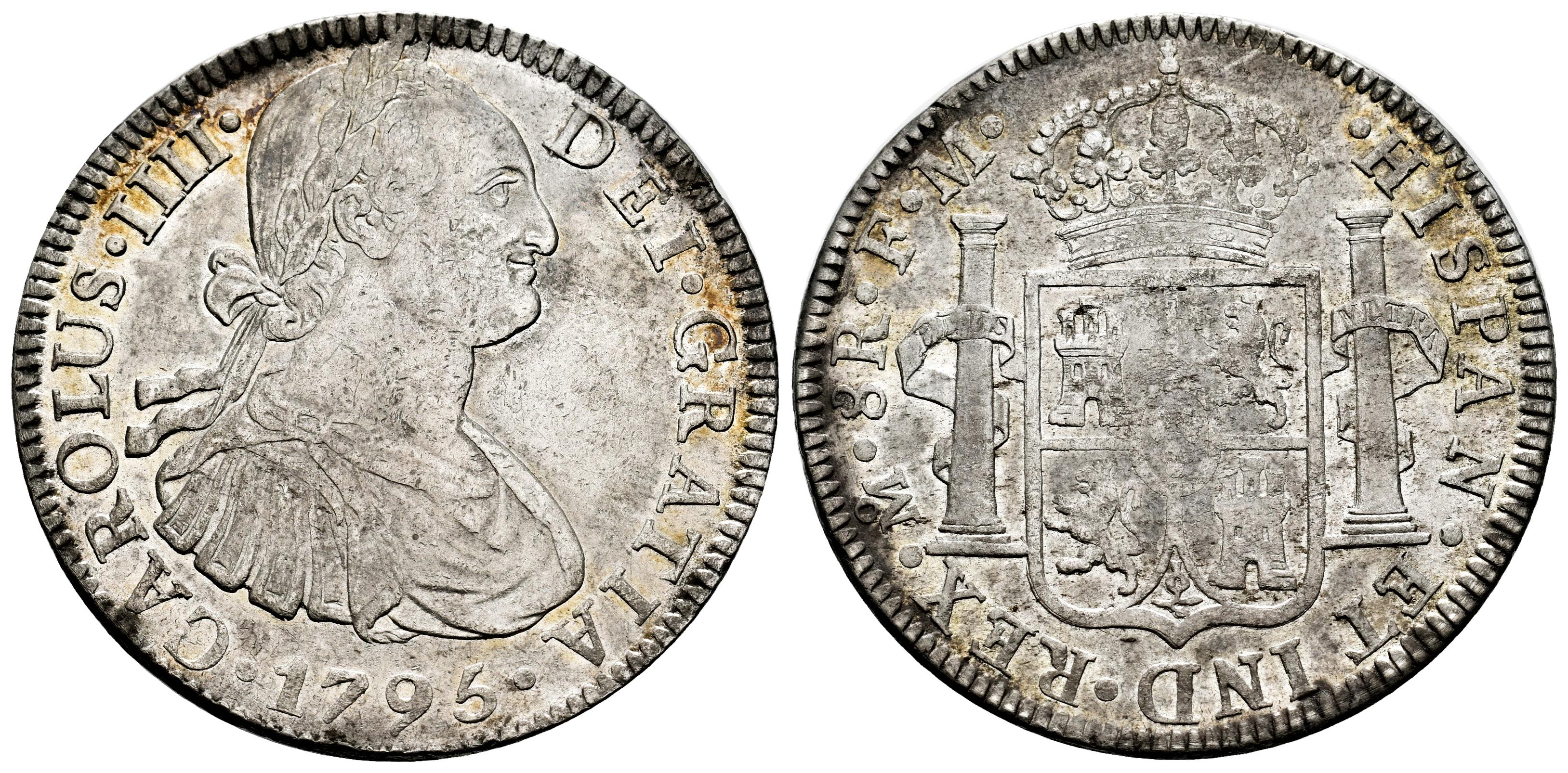 Charles IV (1788-1808). 8 reales. 1795. Mexico. FM. (Cal-958). Ag. 26,89 g. Lightly toned. Choice VF. Est...150,00.