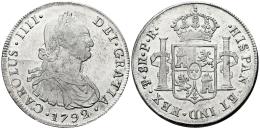 Charles IV (1788-1808). 8 reales. 1792. Potosi. PR. (Cal-992). Ag. 26,86 g. Die break on obverse. Faint scratches. Large flan. Weak strike. Original luster. XF. Est...300,00.