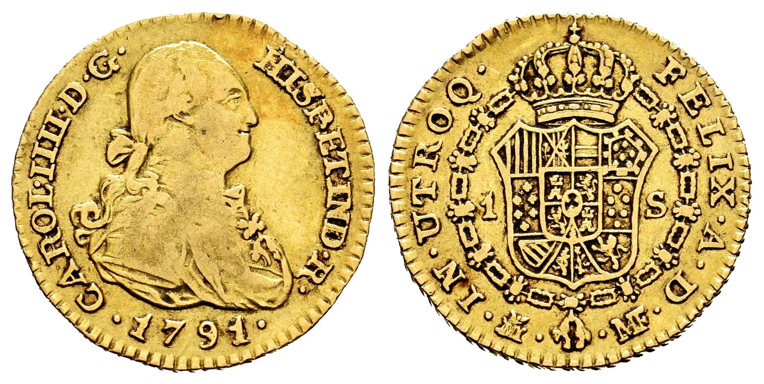 Charles IV (1788-1808). 1 escudo. 1791. Madrid. MF. (Cal-1108). Au. 3,36 g. Cleaned. Choice F/Almost VF. Est...300,00.
