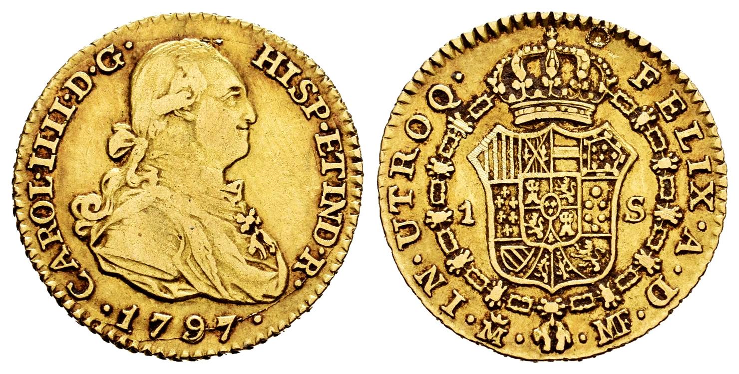 Charles IV (1788-1808). 1 escudo. 1797. Madrid. MF. (Cal-1115). Au. 3,35 g. Cleaned. Almost VF. Est...300,00.