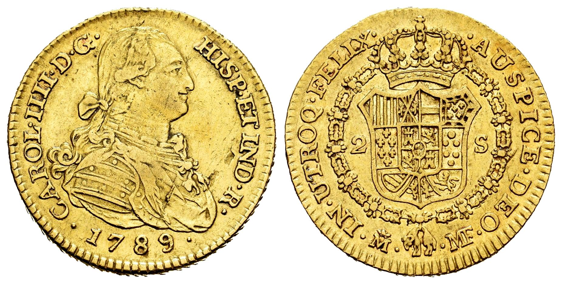 Charles IV (1788-1808). 2 escudos. 1789. Madrid. MF. (Cal-1274). Au. 6,74 g. Small planchet flaw on obverse. Slightly cleaned. VF. Est...600,00.