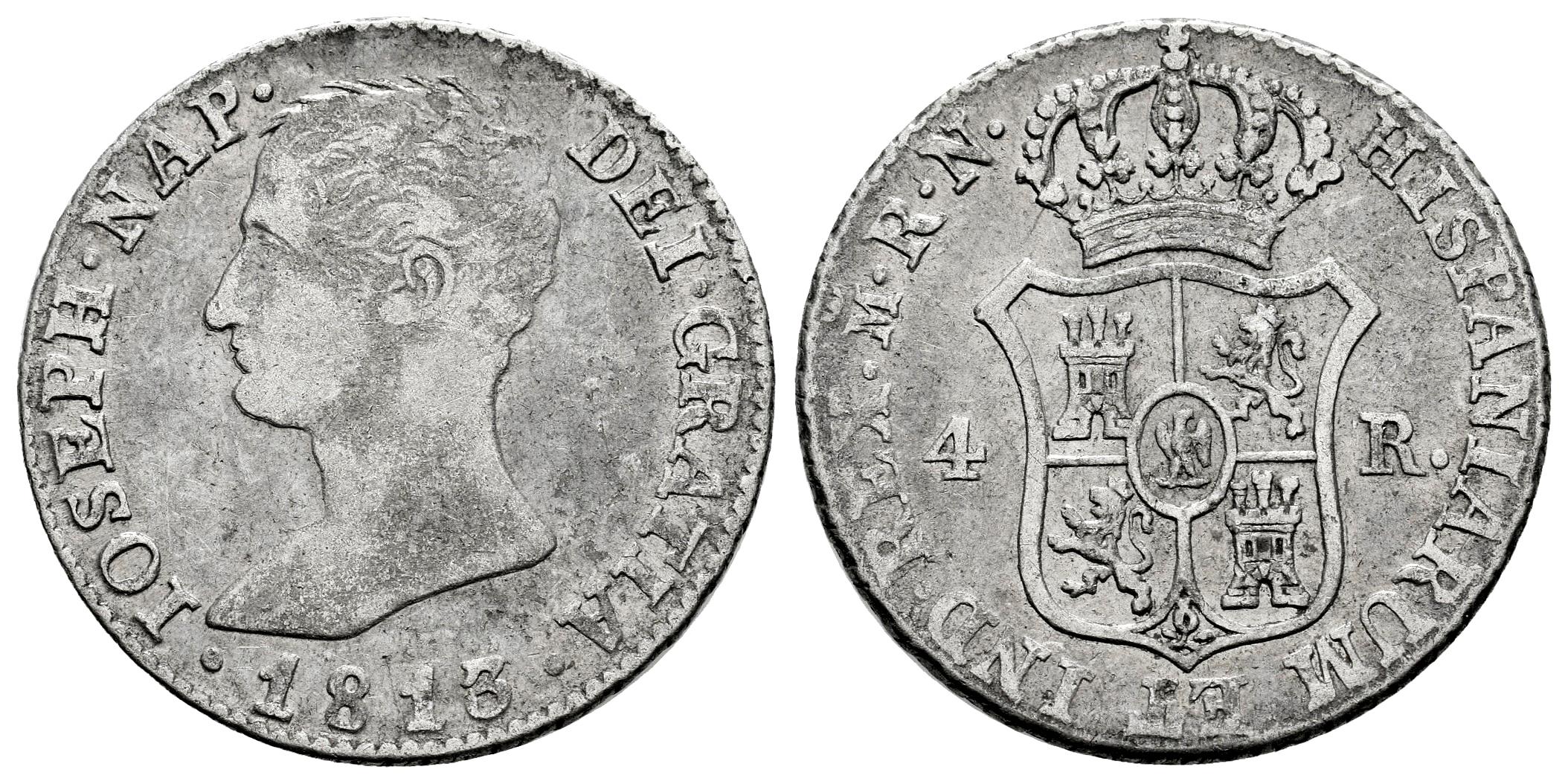 Joseph Napoleon (1808-1814). 4 reales. 1813. Madrid. RN. (Cal-22). Ag. 5,70 g. Choice F/Almost VF. Est...60,00.