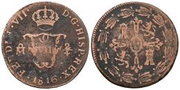 Ferdinand VII (1808-1833). 2/4 de Tlaco. 1816. Mexico. (Cal-112). Ae. 6,96 g. Scarce. Almost VF. Est...60,00.
