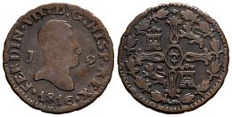 Ferdinand VII (1808-1833). 2 maravedis. 1816. Jubia. (Cal-129). Ae. 2,66 g. Bare bust. Rare. Choice F/Almost VF. Est...120,00.