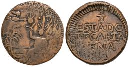 Ferdinand VII (1808-1833). 1/2 real. 1812. Cartagena de Indias. (Cal-316). (Restrepo-131/2). Ae. 5,17 g. Scarce. VF. Est...140,00.