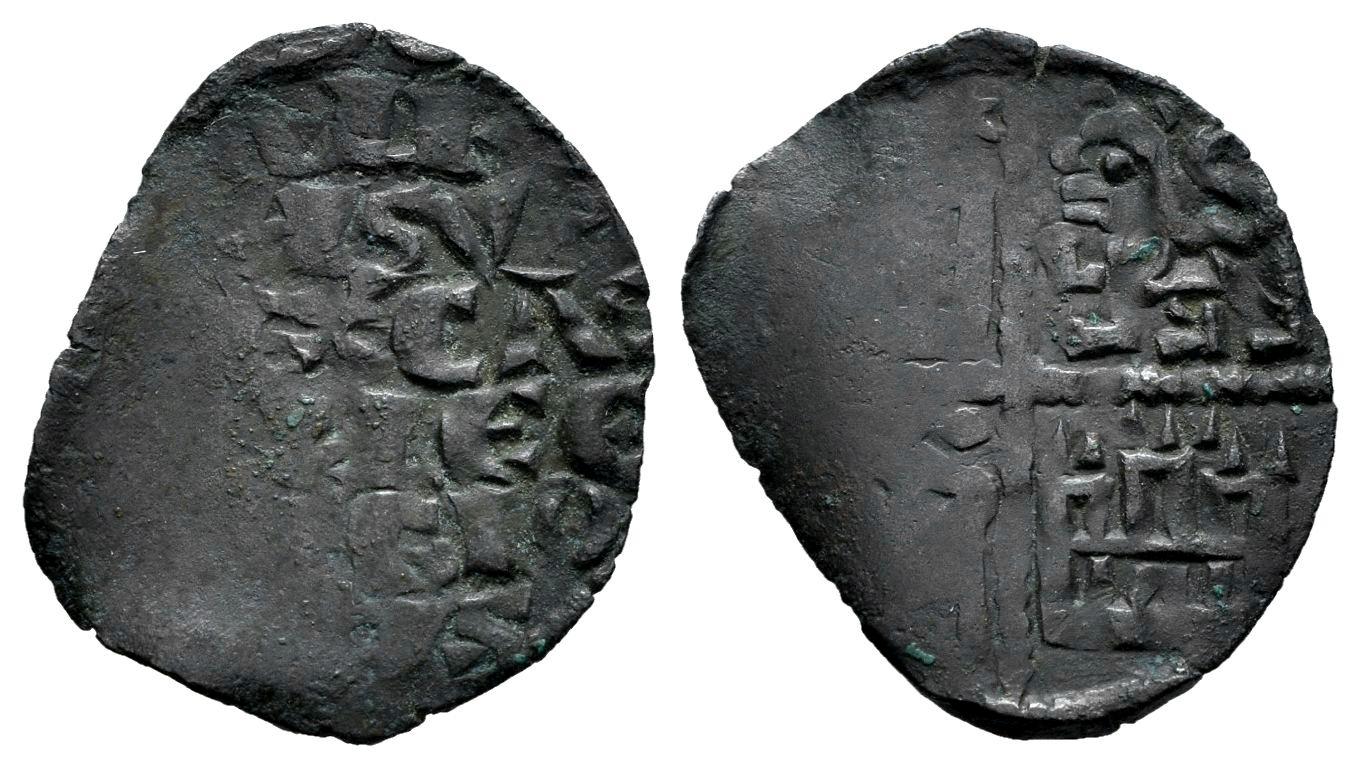 Kingdom of Castille and Leon. Alfonso X (1252-1284). "Dinero de seis lineas". (Bautista-373). Bi. 0,69 g. Star in the 1st quarter. Weak of strike. Almost VF. Est...30,00.