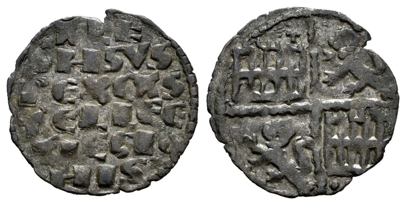 Kingdom of Castille and Leon. Alfonso X (1252-1284). "Dinero de seis lineas". (Bautista-Unlisted). Bi. 0,63 g. Apparently unpublished mintmark. Shows a letter T? in the 1st quarter and pellet in the 4th quarter. Very rare. Choice VF/VF. Est...150,00.