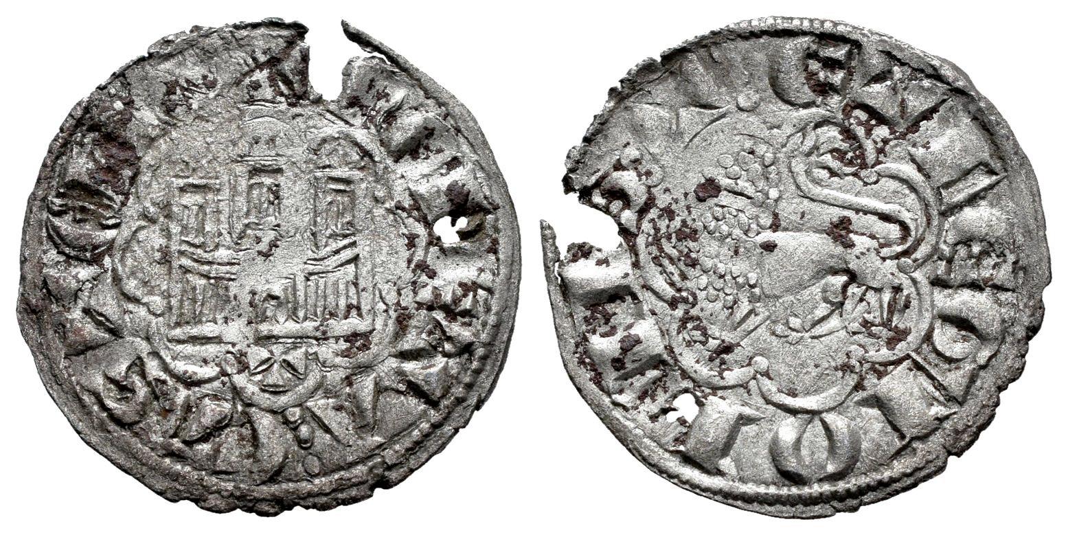 Kingdom of Castille and Leon. Alfonso X (1252-1284). Noven. Toledo. (Bautista-401 var.). Anv.: + MONETA︙CASTELLE. Rev.:  +︙ET LEGIONI︙. Bi. 0,73 g. T below the castle. Curious appendix of the letter G. Light planchet break. Almost VF/VF. Est...40,00.