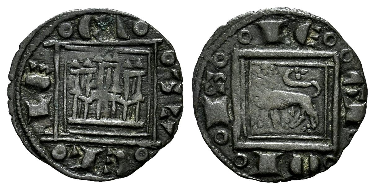 Kingdom of Castille and Leon. Alfonso X (1252-1284). Obol. Without mint mark. (Bautista-406.9). Rev.: oLEo / oGIo / oOIo / oISo. Bi. 0,51 g. Choice VF. Est...40,00.