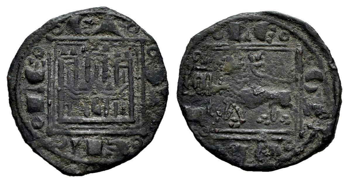 Kingdom of Castille and Leon. Alfonso X (1252-1284). Obol. Leon. (Bautista-413). Bi. 0,66 g. L on the door of the castle. VF. Est...35,00.