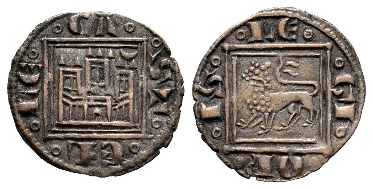 Kingdom of Castille and Leon. Alfonso X (1252-1284). Obol. (Bautista-418). (Abm-288). Bi. 0,43 g. Crescent over the right tower. Choice VF. Est...30,00.