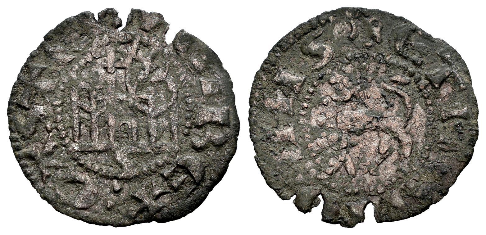 Kingdom of Castille and Leon. Infante Don Enrique (1259). Dinero. Sevilla. (Bautista-421 var.). Anv.: (+ E)И REX : CASTE. Rev.: + ET LEGIONIS. Bi. 0,62 g. S below the castle. Light planchet break. Almost VF. Est...20,00.