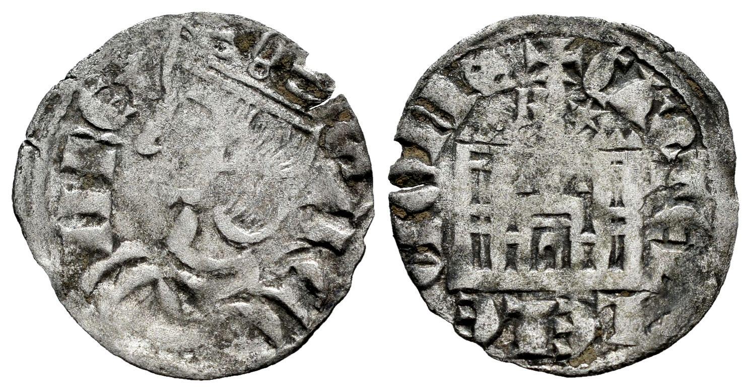 Kingdom of Castille and Leon. Sancho IV (1284-1295). Cornado. Burgos. (Bautista-427 var.). Rev.: CASTEL LE LE GIONIƧ. Bi. 0,64 g. B and star above the castle´s towers. The letter S in LEGIONIS is inverted. Scarce. Choice F. Est...40,00.