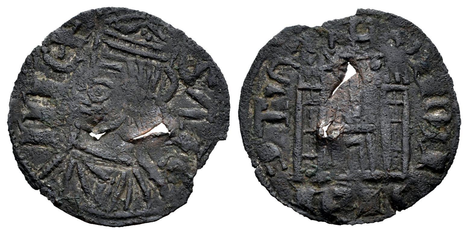 Kingdom of Castille and Leon. Sancho IV (1284-1295). Cornado. Coruña. (Bautista-Type 428). Bi. 0,64 g. Star and scallop above the castle. Contemporary counterfeit. Demonetized. Almost VF. Est...30,00.