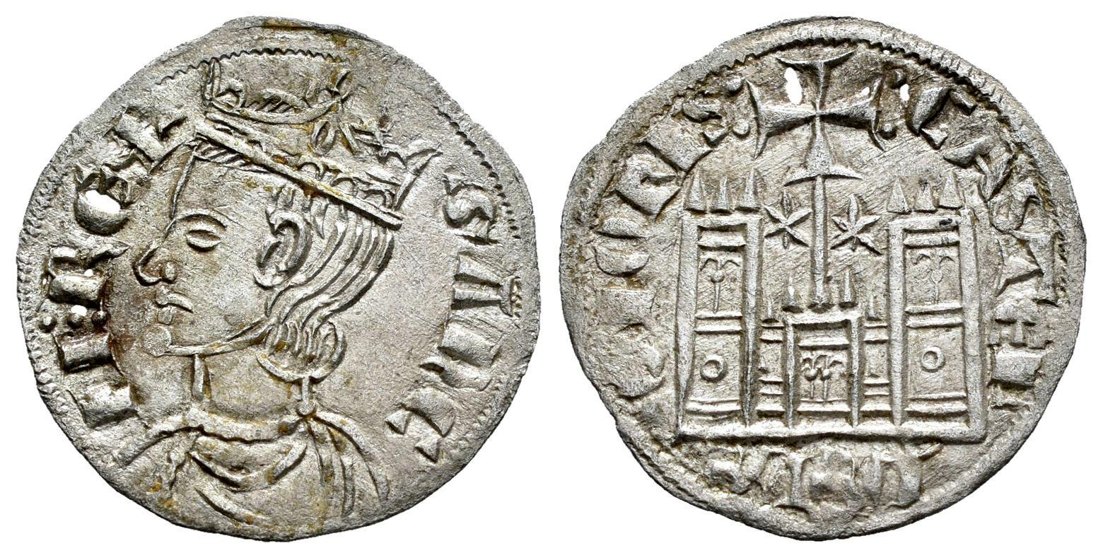 Kingdom of Castille and Leon. Sancho IV (1284-1295). Cornado. (Bautista-437 var.). Bi. 0,72 g. With two stars above the castle. Roundel on the crown. Small holes. Very scarce. Almost XF. Est...60,00.