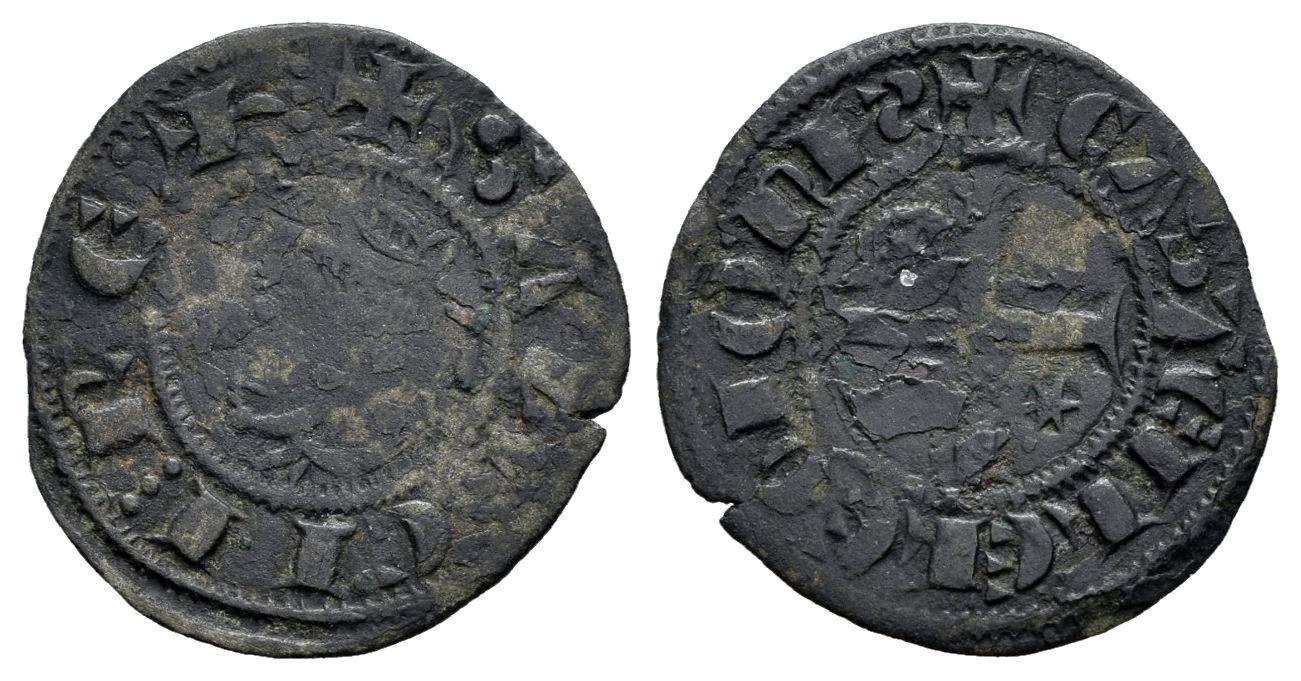 Kingdom of Castille and Leon. Sancho IV (1284-1295). Seisen or Meaja Coronada. (Bautista-439 var.). Anv.: + SAИ CII︙RE︙X︙. Rev.: + CASTELLE LEGIONIƧ. Bi. 0,55 g. With a star on the 1st and 4th quadrants. Patina. Scarce. Choice F/Almost VF. Est...40,00.