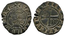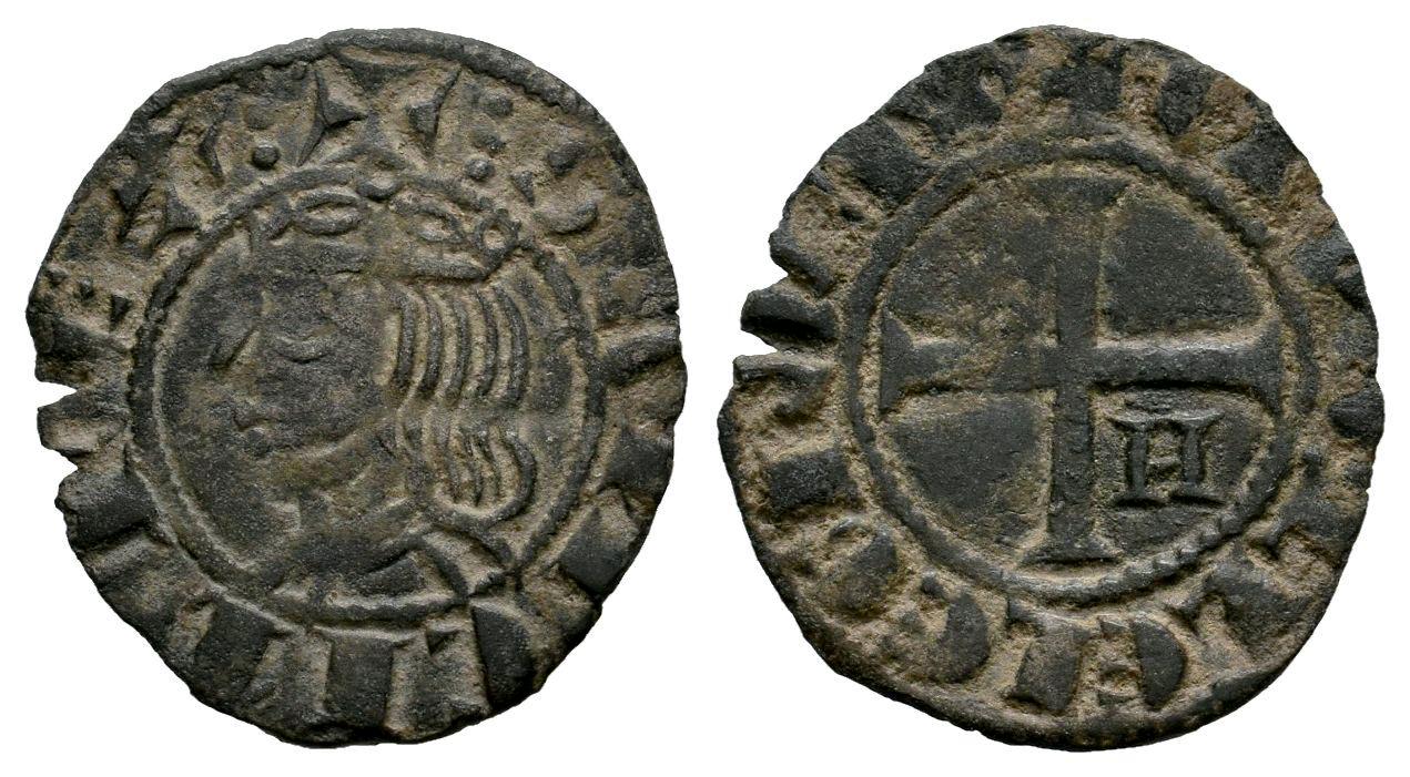 Kingdom of Castille and Leon. Sancho IV (1284-1295). Seisen or Meaja Coronada. Murcia. (Bautista-444). (Abm-312.1). Bi. 0,55 g. Star in the 1st quadrant and H in the 4th quadrant. VF. Est...25,00.