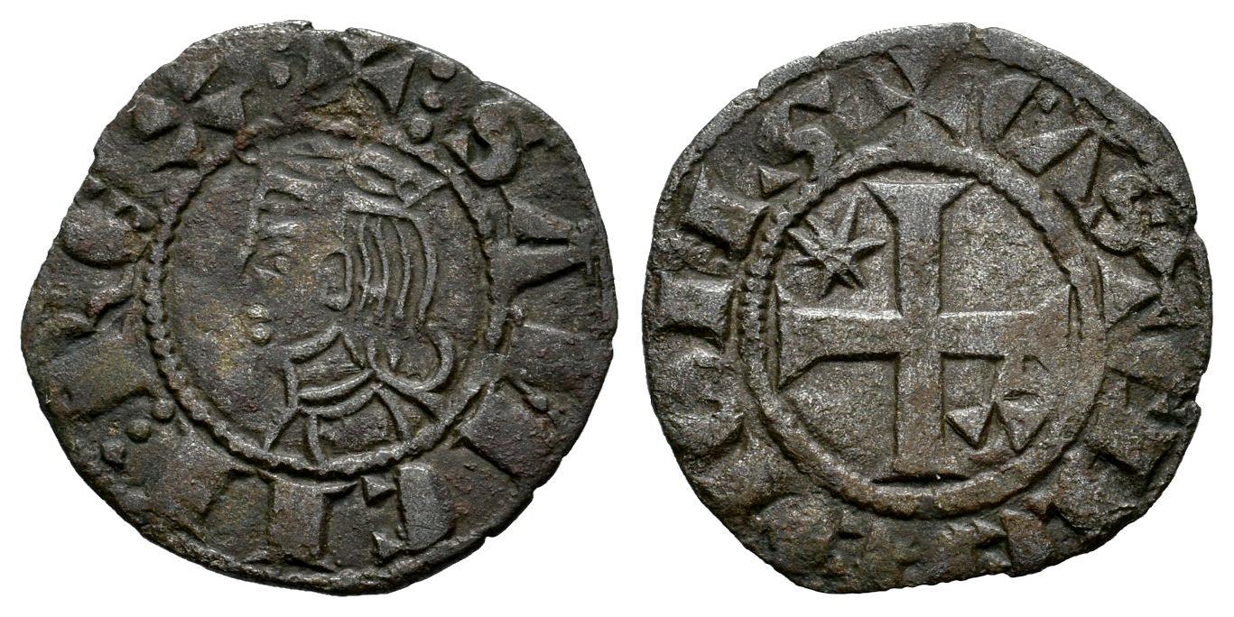 Kingdom of Castille and Leon. Sancho IV (1284-1295). Seisen or Meaja Coronada. Toledo. (Bautista-446). (Abm-314). Bi. 0,76 g. Star in the 1st quadrant and T in the 4th quadrant. Choice VF. Est...35,00.
