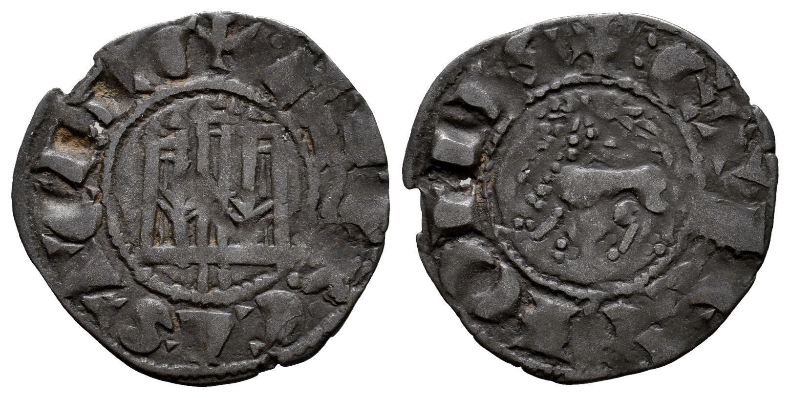 Kingdom of Castille and Leon. Fernando IV (1295-1312). Pepion. Burgos. (Bautista-450.1). (Abm-319.1). Anv.: + F REGIS CASTELLE. Bi. 0,75 g. B below castle. VF. Est...25,00.