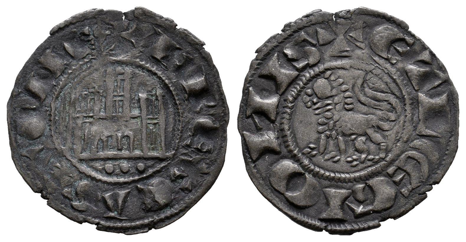 Kingdom of Castille and Leon. Fernando IV (1295-1312). Pepion. (Bautista-459). (Abm-328). Bi. 0,84 g. Three pellets below the castle. Choice VF/Almost XF. Est...30,00.