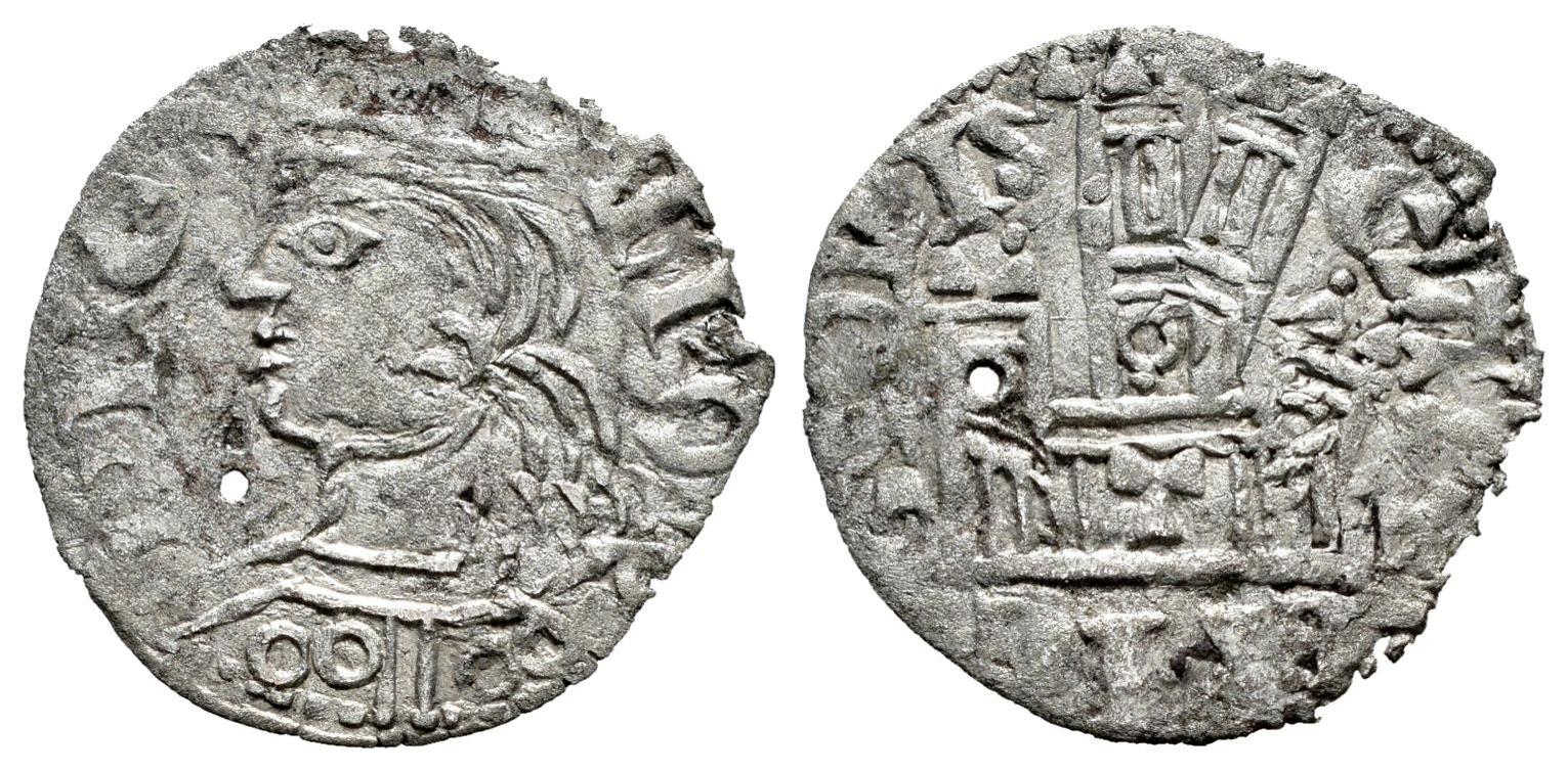 Kingdom of Castille and Leon. Alfonso XI (1312-1350). Cornado. Toledo. (Bautista-478). Bi. 0,56 g. T on the door of castle. Double struck on reverse. Holed. VF. Est...40,00.