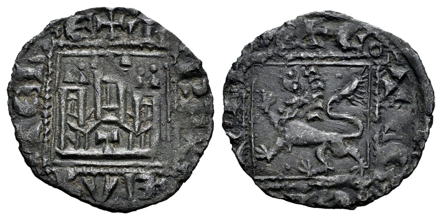 Kingdom of Castille and Leon. Alfonso XI (1312-1350). Noven. Toledo. (Bautista-487 var.). Bi. 0,81 g. T on the door of castle. The side towers are topped with pellets. Choice VF. Est...35,00.