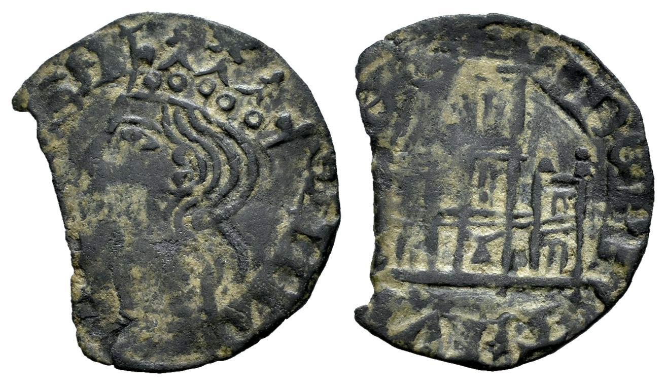 Kingdom of Castille and Leon. Aymar VI of poitiers (1366-1369). Cornado. Toledo. (Bautista-502.1, como Alfonso XI). Anv.: SANT - (A OR)SA. Rev.: A DE PICTAVI(A CO)NS. Bi. 0,67 g. T on the door of castle. Planchet break. Choice F/Almost VF. Est...25,00.