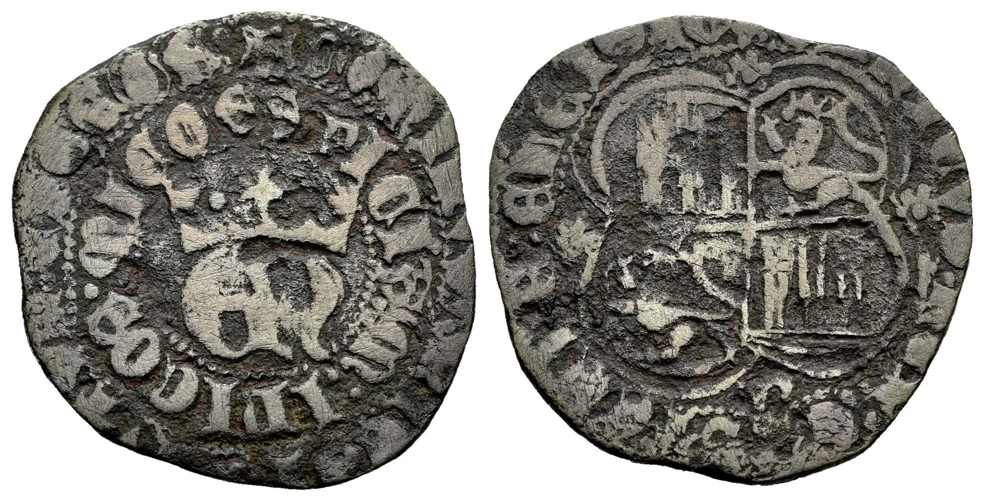 Kingdom of Castille and Leon. Enrique II (1368-1379). Real de vellon. Burgos. (Bautista-572.6). Bi. 3,19 g. B bajo el cuartelado y florones en los extremos. Choice F. Est...30,00.