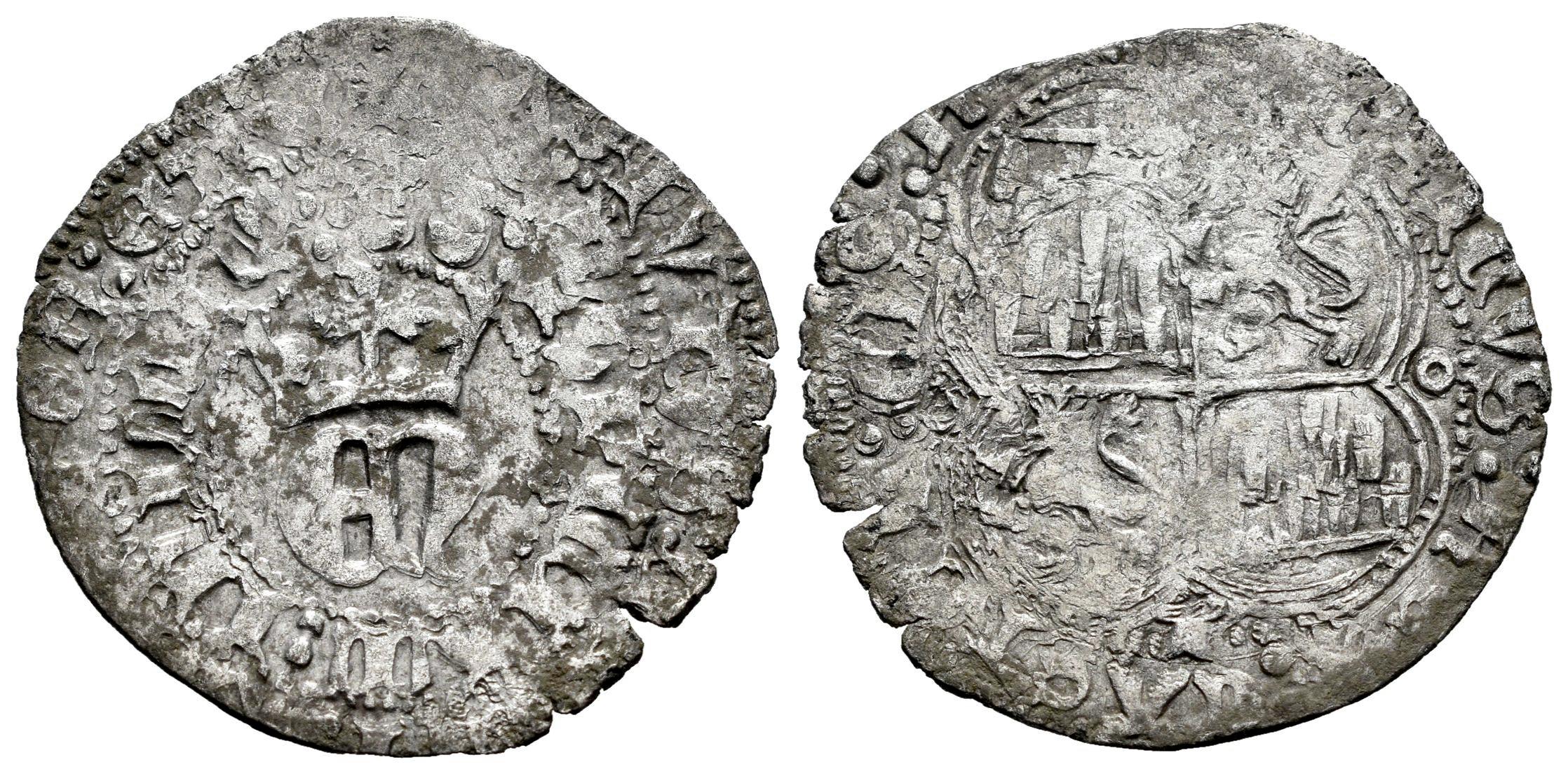 Kingdom of Castille and Leon. Enrique II (1368-1379). Real de vellon. Toledo. (Bautista-583.1 var). (Imperatrix-E2:2.32, mismo ejemplar). Bi. 2,02 g. T bajo el cuartelado y roeles en los extremos. Vellón rico. Escasa. VF/Almost VF. Est...90,00.
