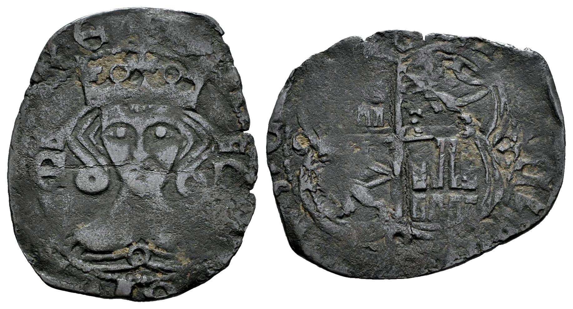 Kingdom of Castille and Leon. Enrique II (1368-1379). Real de vellon. Without mint mark. (Bautista-589.2 var). Bi. 1,65 g. Roeles en los extremos del cuartelado. Cospel faltado. VF. Est...35,00.