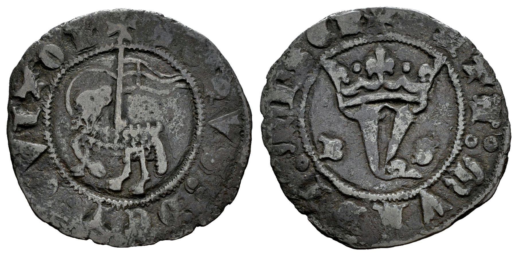 Kingdom of Castille and Leon. Juan I (1379-1390). Blanca del Agnus Dei. Burgos. (Bautista-723). Bi. 1,38 g. B-S a los lados de la Y coronada. Choice F/Almost VF. Est...25,00.