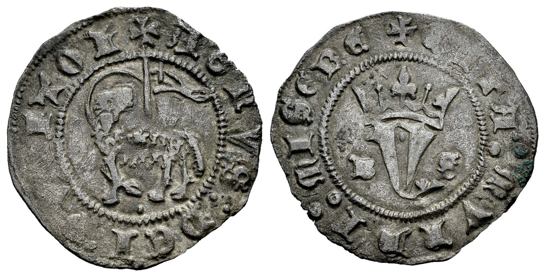 Kingdom of Castille and Leon. Juan I (1379-1390). Blanca del Agnus Dei. Burgos. (Bautista-723 var). Bi. 1,39 g. B-S a los lados de la Y coronada. Punto debajo del cordero. VF/Choice VF. Est...45,00.