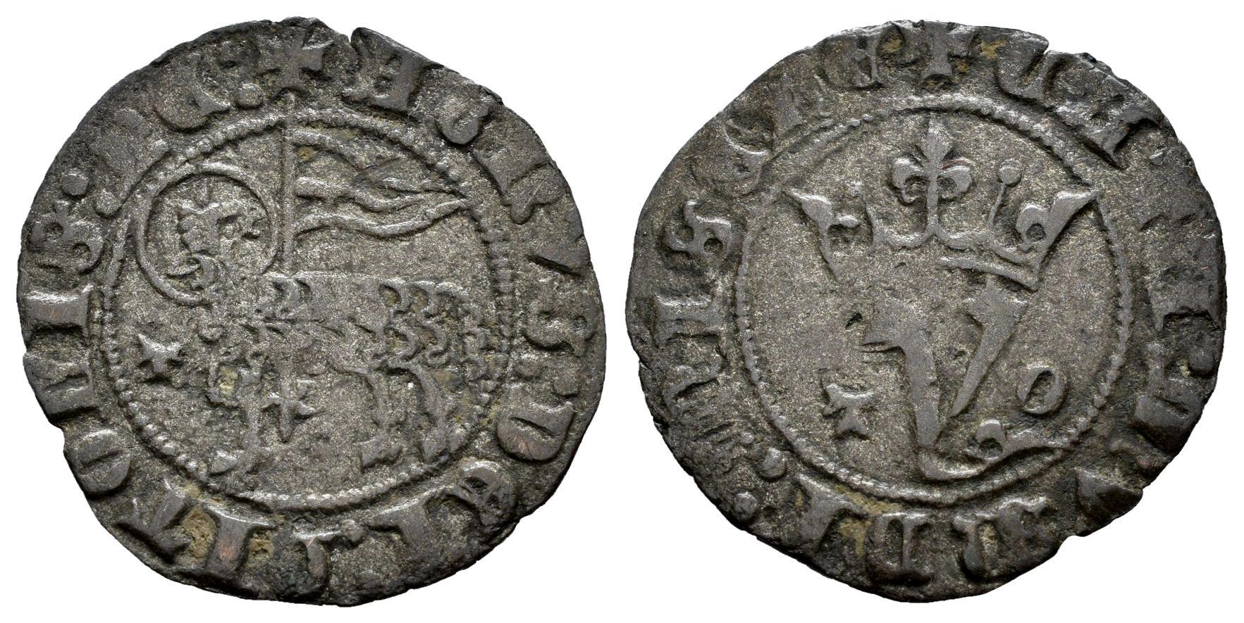 Kingdom of Castille and Leon. Juan I (1379-1390). Blanca del Agnus Dei. Toledo. (Bautista-731.1). Anv.: + AGNVS DEI : QITOLIS : PE : . Rev.: + CATA : MVNDI : MISERE. Bi. 1,30 g. T before the lamb and T O on both sides of crowned Y. Patina. Almost VF. Est...40,00.