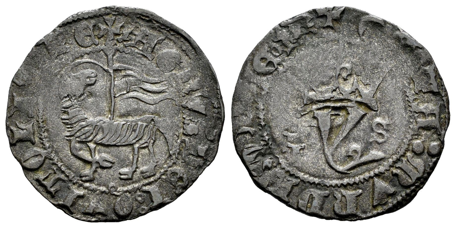 Kingdom of Castille and Leon. Juan I (1379-1390). Blanca del Agnus Dei. (Bautista-No cita). Bi. 1,95 g. I-S a los lados de la Y coronada. Ligera doble acuñación de la I. Inédita. Muy rara. Choice VF. Est...200,00.