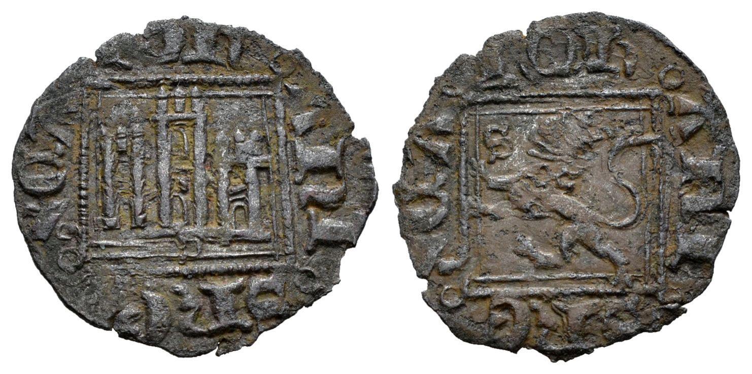 Kingdom of Castille and Leon. Juan I (1379-1390). Noven. Sevilla. (Bautista-754.1). Bi. 0,74 g. S below the castle and S in front of the lion. Scarce. Choice VF. Est...50,00.