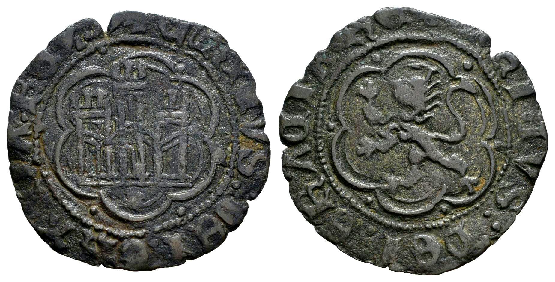 Kingdom of Castille and Leon. Enrique III (1390-1406). Blanca. Coruña. (Bautista-766 var.). Anv.: + ENRICVS : DEI : GRACIA : REX : ¿?. Rev.: + ENRICVS : DEI : GRACIA RE. Bi. 1,56 g. Scallop below the castle. Scarce. Almost VF/VF. Est...45,00.