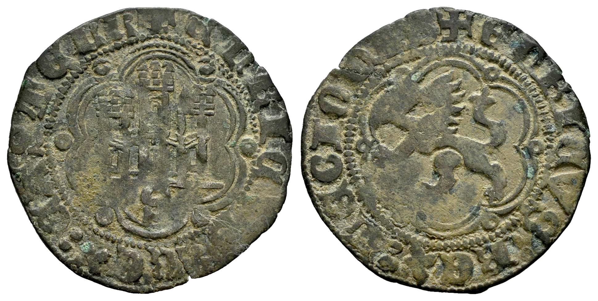Kingdom of Castille and Leon. Enrique III (1390-1406). Blanca. Sevilla. (Bautista-767 var.). Anv.: + ENRICVS : REX : CASTELL. Rev.: + ENRICVS : REX : LEGIONIS. Bi. 1,67 g. S below the castle. Almost VF. Est...20,00.