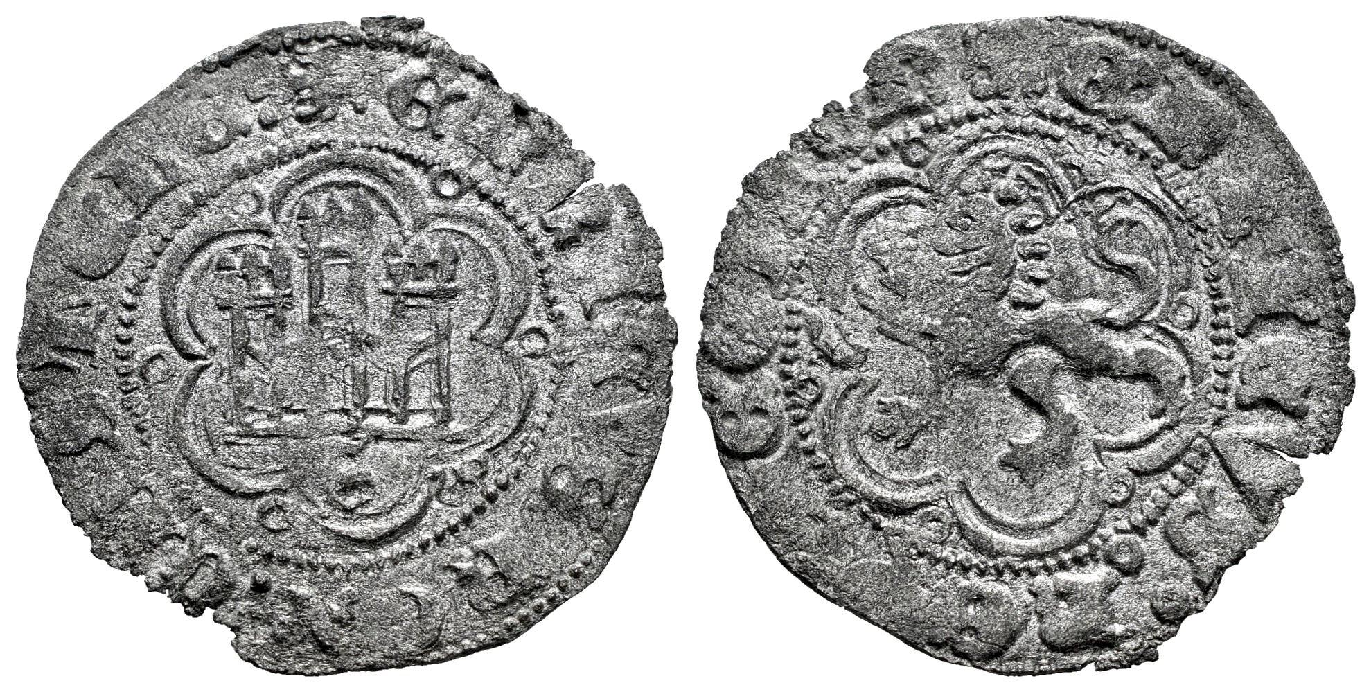 Kingdom of Castille and Leon. Enrique III (1390-1406). Blanca. Sevilla. (Bautista-767 var.). Anv.: + ENRICVS : REX : CASTELE : . Rev.: + ENRICVS : REX : LEGION. Bi. 1,57 g. S below the castle. Rich billon content. Choice VF. Est...35,00.