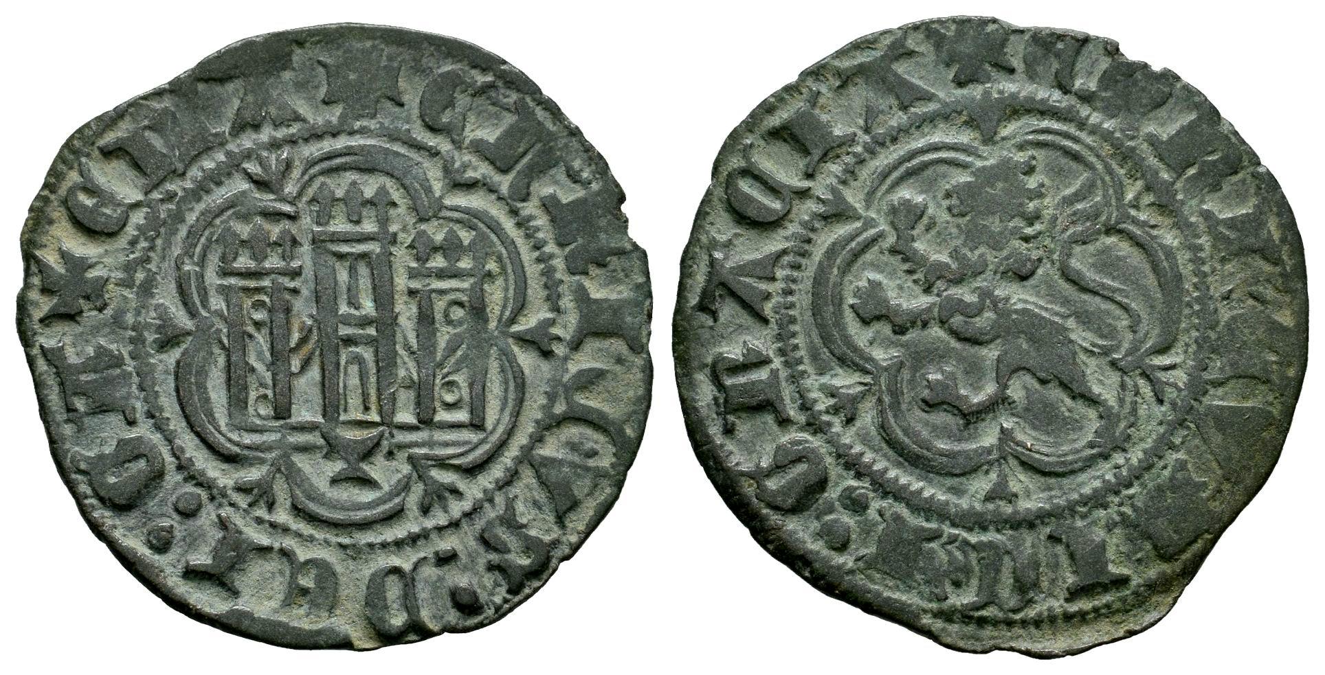 Kingdom of Castille and Leon. Enrique III (1390-1406). Blanca. Cuenca. (Bautista-768). (Abm-600 var). Anv.: + ENRICVS : DEI : CA + ENIA. Rev.: + ENRICVS IEI : GRACIA. Bi. 1,93 g. Bowl below castle. Double strike. Choice VF. Est...30,00.