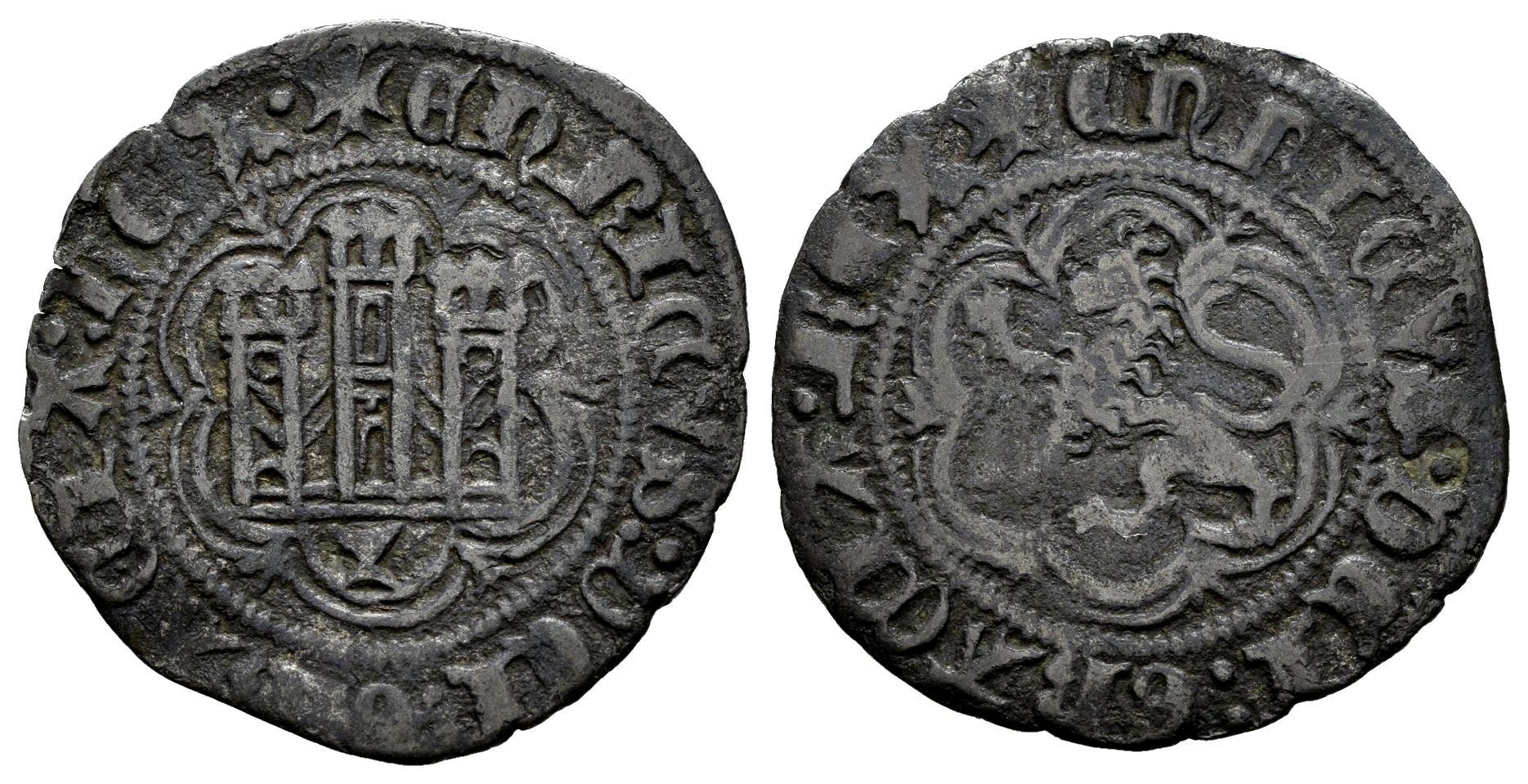 Kingdom of Castille and Leon. Enrique III (1390-1406). Blanca. Cuenca. (Bautista-768 var.). Anv.: + ENRICVS : DEI : GRACIA : REX · . Rev.: + ENRICVS : DEI : GRACIA : REX. Bi. 1,63 g. Bowl below castle. Almost VF. Est...25,00.