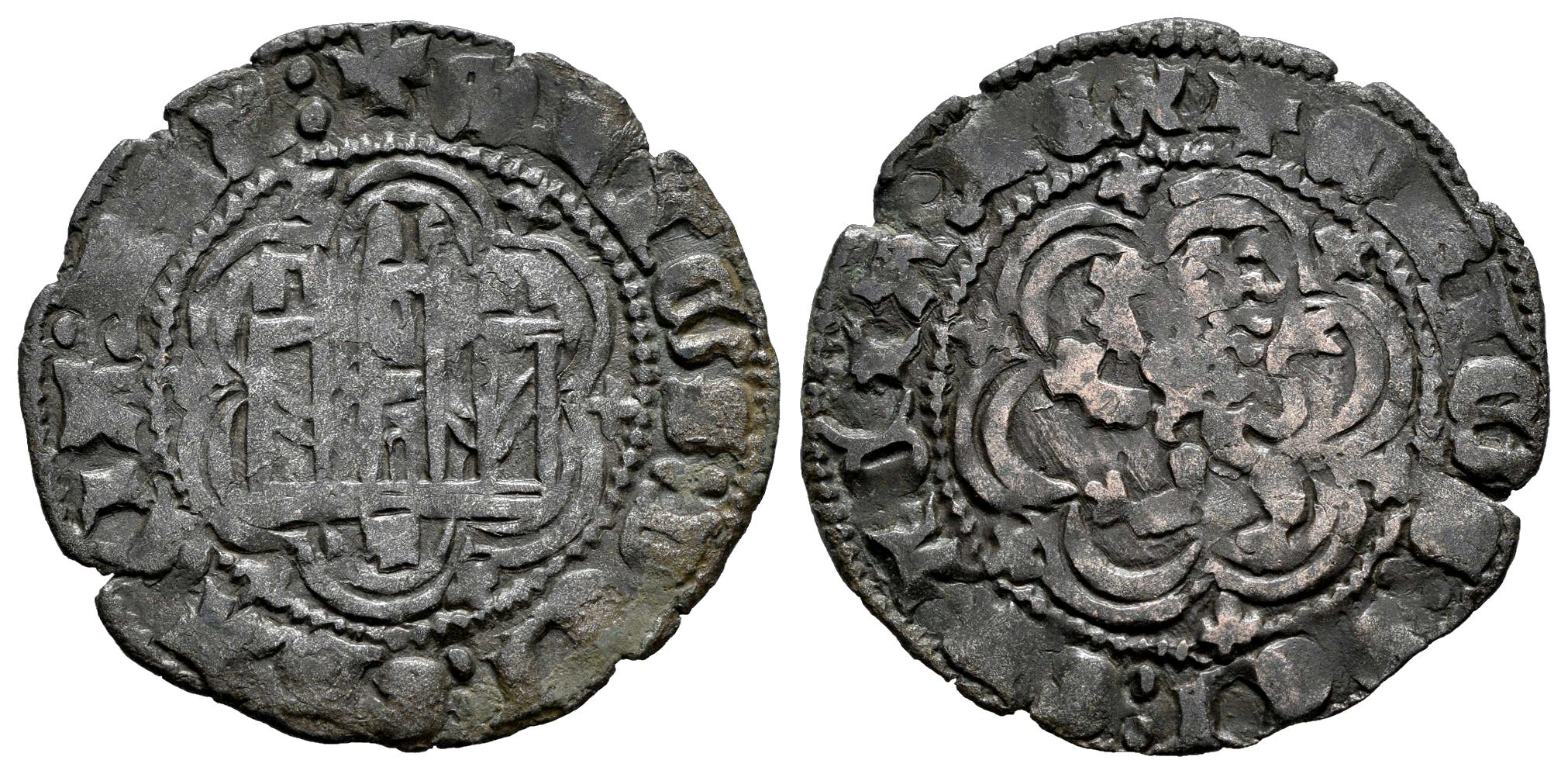 Kingdom of Castille and Leon. Enrique III (1390-1406). Blanca. Toledo. (Bautista-770 var.). Anv.: + ENRI(CU)S : DEI : GRACIA : REX : . Rev.: + ENRI(CU)S : DEI : GRACIA : REX. Bi. 2,04 g. T below the castle. Almost VF. Est...20,00.